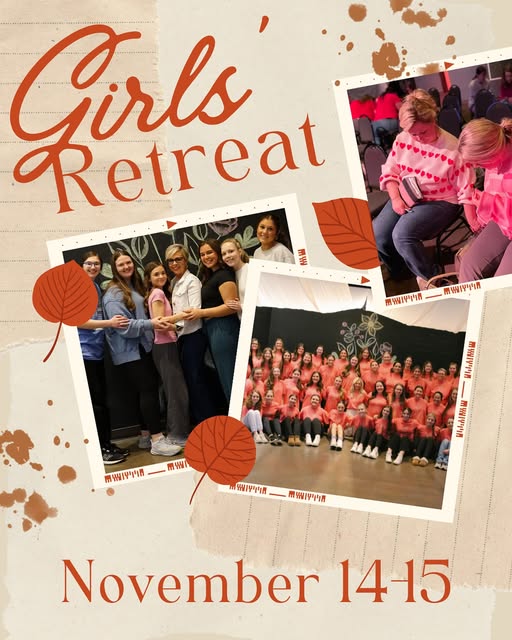 Girls Retreat is November 14-15. This weekend is a special time for girls, 6th-12th grade, to come together to worship God and spend time with each other in community. We will have teaching by guest speakers Samantha Arp, Hannah Coley, and a college panel discussion led by Rachel McDonald. Worship sessions led by Abbey Thompson and band, small group time, a fun activity, great food, snacks, and so much more! Our sessions will take place at the Rock, and girls will spend the night in host homes Friday evening according to grade. We will end our weekend on Saturday at the home of the Seay’s with dinner, a bonfire, time of worship, and more.